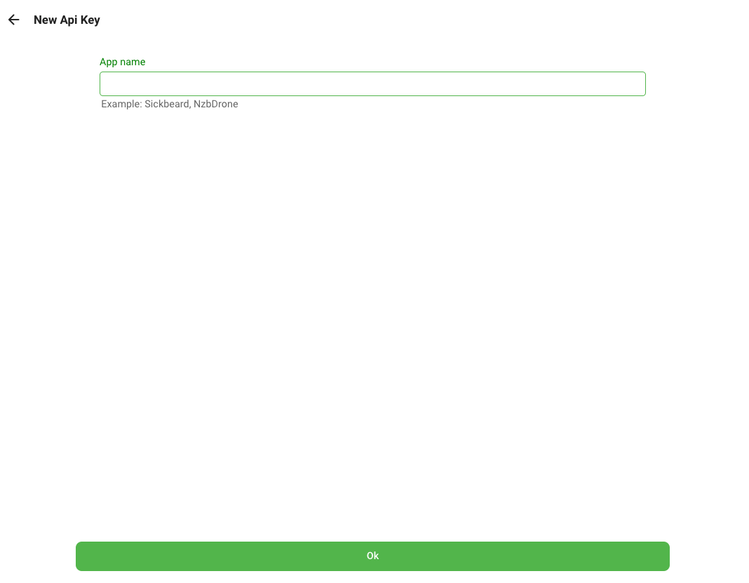 1. Fill in an App name (e.g. Ombi) and click OK.