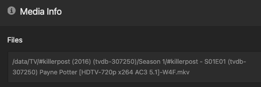 No target libraries found error="/tv/#killerpost (2016)/Season 1/: failed determining libraries" target=plex url=https://plex.mydomain.tld/
